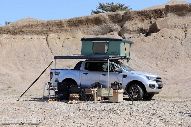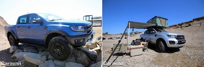 포드 레인저 와일드트랙은 최대 견인력 3,500kg을 자랑하며 견인차로 주목받고 있다. 전장 5,490mm, 전폭 1,870mm, 전고 1,850mm이며 공차 중량 2,310kg로 1,617kg~1,848kg 전후의 카라반을 견인하기에 적합하다. 물론 몇 가지 보강 작업과 장비가 더해진다면 1.5배에 달하는 무거운 미국 트레일러 견인도 가능해진다. 하지만 안전에 있어 기본적인 매뉴얼과 허용치를 넘기는 것은 금물이다.