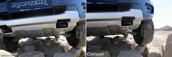 랩터 모델은 오프로드에 특화된 서스펜션을 적용하고 있어 지상고가 46mm/전고는 25mm 높고 무거워졌다. 험로에 유리한 반면 가격대가 워낙 차이를 보이고 있어 와일드 트랙에 별도의 튜닝 작업이 추가되는 것이 유리하다란 의견도 만날 수 있다.