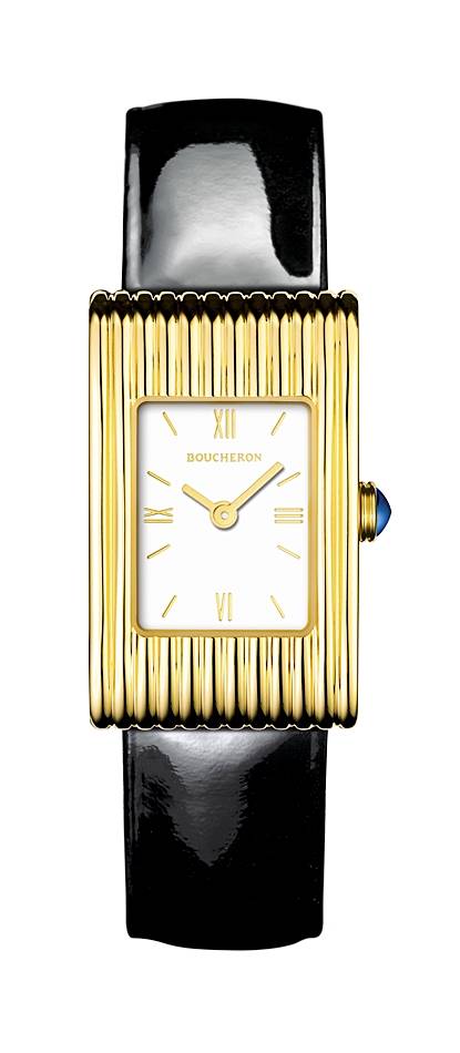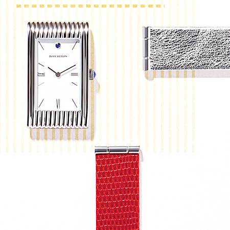 부쉐론의 대표 아이코닉 시계 컬렉션으로 리플레(Reflet)를 빼놓을 수 없습니다. 리플레 시계는 1947년 제럴드 부쉐론(Gerald Boucheron)에 의해 탄생했습니다. 기하학적이면서도 단순한 디자인, 직선미와 곡선미가 대비를 이루면서 동시에 조화를 이루는 독특함이 당대 센세이션을 일으켰죠. 모더니즘을 제대로 보여준 것입니다.