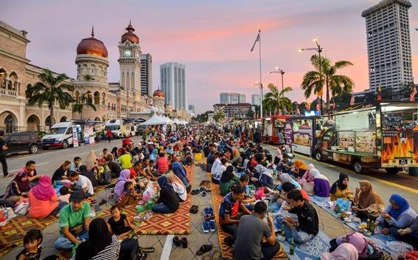 | ▲ 말레이시아 쿠알라 룸푸르에서는 마그립이 되자 사람들이 메르데카 광장에 모여 앉아 라마단 저녁 만찬을 즐기고 있다. |