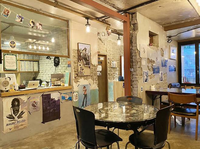 옛 건물의 흔적을 곳곳에서 찾아볼 수 있는 이곳은 차분한 색감으로 이뤄져 있는 조용한 공간이다. 어두운 톤의 벽과 가구들 사이로 싱그러운 식물들이 놓여 있어 생기를 더해 준다. 밤이 되어 조명이 켜지면 더욱 아늑한 느낌으로 가득해지며 소박하지만 운치 있는 루프탑도 있어 더욱 좋다. 크림커피와 코코넛 커피부터 미숫가루와 건강 생강차, 크림쇼콜라와 말차 아포카토 등의 다양한 음료들이 있으며 다섯 가지 종류의 샌드위치와 각종 케이크도 준비돼 있다.