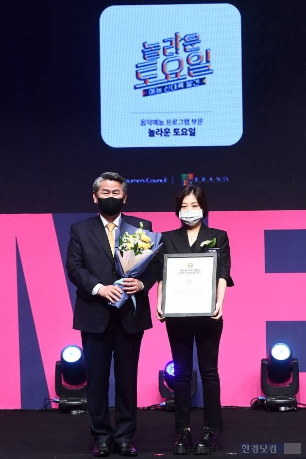 '2021 브랜드 고객충성도 대상'은 미국 10대 브랜드 컨설팅기관인 브랜드키(Brand Keys)와 한국소비자포럼이 대한민국 브랜드의 충성도를 조사해 사회와 대중문화에 가장 영향력 있는 각 부문별 1위 브랜드를 발표하는 국내 최대 규모의 행사다. 이날 시상식은 정부의 방역지침에 따라 1, 2부로 나눠 진행됐다.