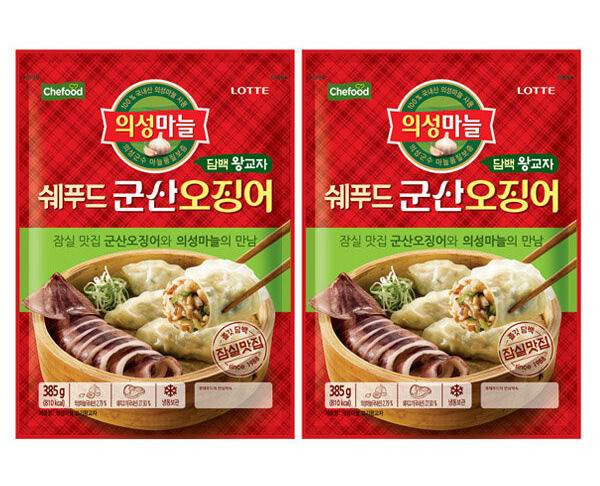 특이한 만두소를 자랑하는 냉동 만두 제품이 많이 나오고 있는데, 의성마늘 군산오징어만두는 만두소에 군산오징어를 넣어 특이한 식감을 자랑하는 만두이다. 만두소는 굉장히 꽉 차있는데 그 안에 오동통한 오징어가 덩어리로 들어있어서 오징어의 식감을 충분히 느낄 수 있어 매력적인 제품이다. 게다가 이 오징어의 맛 덕분에 만두 탕수육을 해서 먹어도 맛있다.