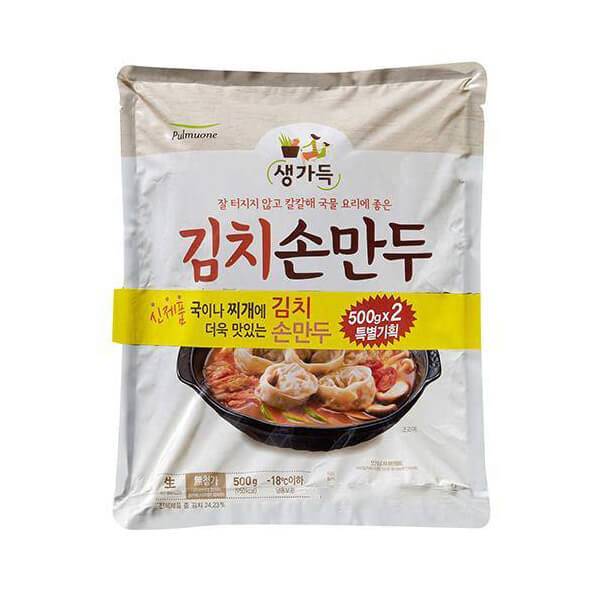 풀무원 김치 손만두는 동글동글한 모양으로 빚은 만두로 찌개나 전골에 넣어 먹기 좋은 제품이다. 만두소에는 김치와 당면이 가득 들어있어서 더욱 매력적이다. 찌개나 전골 요리를 할 때 빼놓지 않고 넣어도 더욱 맛있지만, 라면 끓일 때도 넣으면 잘 어울린다. 국물과 함께 끓여도 터지지 않고 맵거나 자극적이지 않아 만두를 좋아하는 사람들이 많이 찾는다.