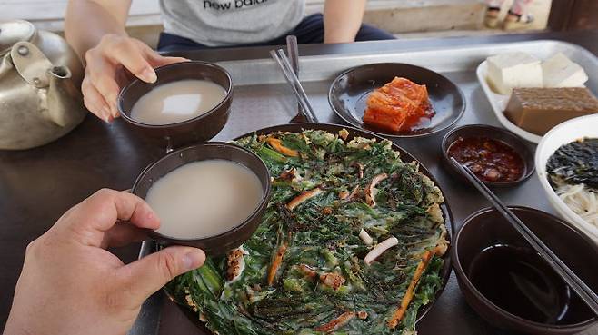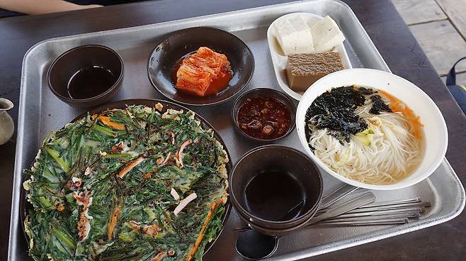 막걸리, 부추전, 두부와 도토리묵으로 든든하게 배를 채울 수 있는 주모 2 세트에 잔치국수를 추가합니다. 주막에 갔으니 머슴(?)처럼 먹어줘야죠!