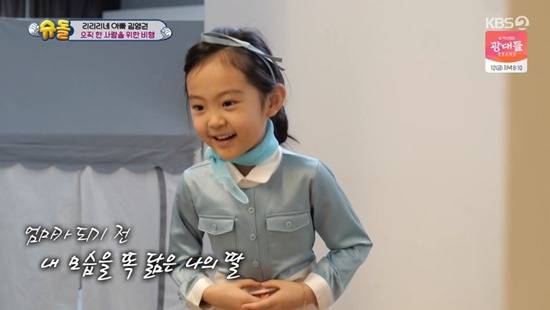 김영권은 승무원 출신 아내를 위해 이벤트를 준비했다. 스튜어드, 스튜어디스 의상을 입은 남편과 아이들을 본 아내는 눈물을 흘리며 "리아랑 리현이 너무 많이 컸다"고 감격했다.