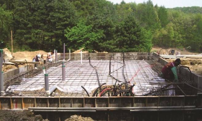 콘크리트 타설 시 예전에는 단열에 대한 생각이 미흡해 단열재를 취부하지 않았지만, 실제로 1층 바닥 난방 시 슬래브로 빠져나가는 에너지가 상당하다. 1층 바닥 슬래브 타설 전 두께 100㎜ 이상 단열재를 시공하고 슬래브를 치면 바닥으로 빠져나가는 에너지를 상당 부분 잡을 수 있다. 기초 벽체에도 마찬가지이다. 또한, 지하실 전체에 단열재를 시공하고 외부 방수 미장을 하고 되메우기를 하면, 단열뿐만 아니라 결로 방지와 완벽한 방수도 가능하다.