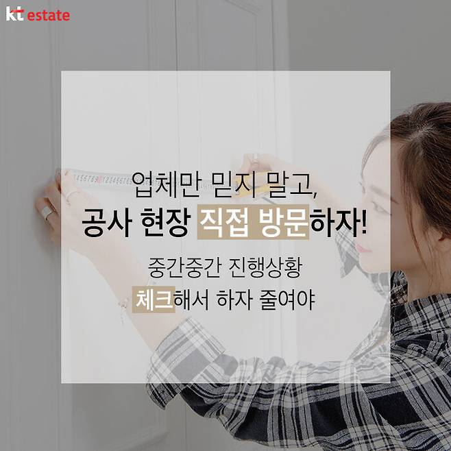 따라서 인테리어 공사 시에는 소비자들이 시공 과정에 주도적으로 참여하는 것이 좋습니다. 그래야 근본적인 하자를 줄일 수 있기 때문이죠. 이를 위해서는 공사기간 중에 종종 현장을 방문해서 인테리어 업체 담당자와 이야기를 나누고, 중요하게 여기는 부분에 대해서는 반드시 직접 체크해야 합니다. 감리자에게 공정 과정마다 공사 감리 일지를 요청하는 것도 하자를 줄이는 좋은 방법입니다.