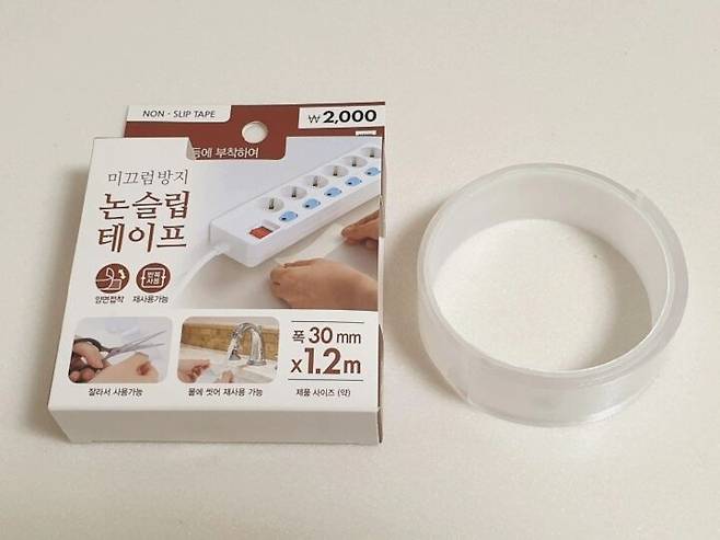 ㄷ자 파일 뒷면에 논슬립테이프를 길게 붙여주세요. 논슬립테이프는 깔끔하게 떨어지고 재사용도 가능해서 하나 구비해 두시면 다용도로 사용하시기 좋아요.
