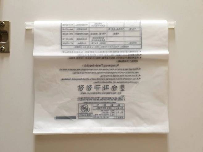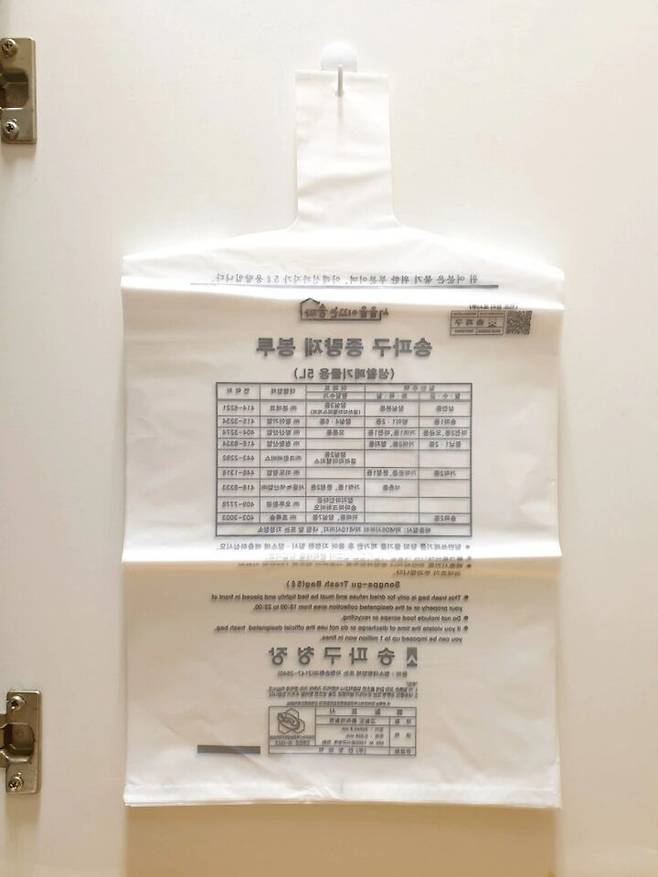 정말 간단하죠? 종량제봉투뿐만 아니라 사이즈가 큰 분리수거 비닐도 구멍 뚫고 걸어두면 필요할 때 한 장씩 툭 뜯어 사용하기 편리해요.