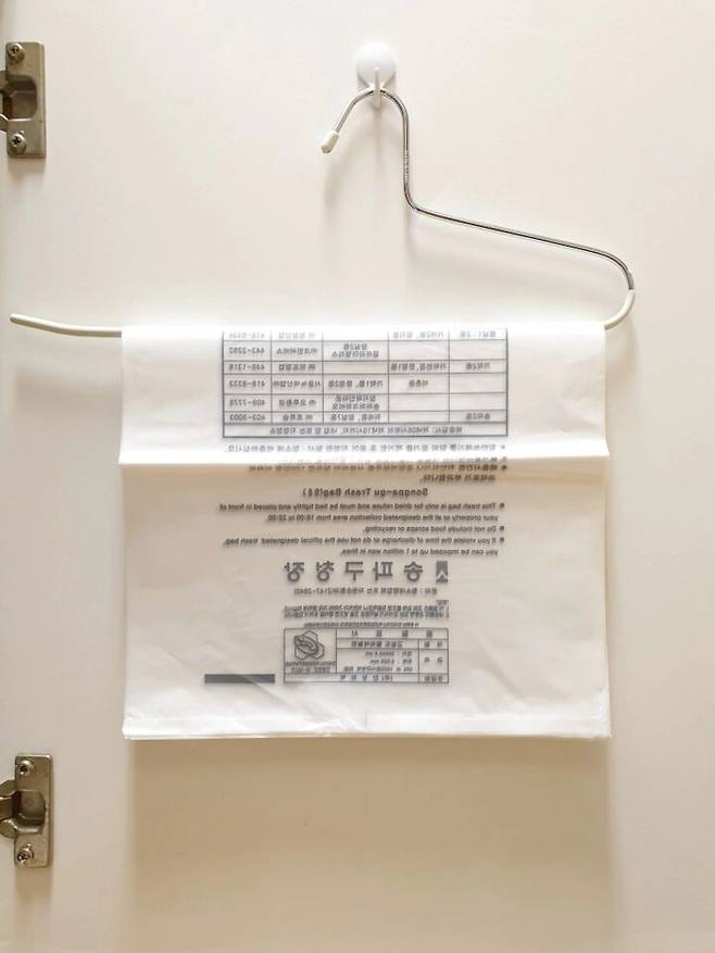 종량제봉투를 한 장씩 접지 않고 그대로 걸어주면 되니 간편하고 옷걸이에 거는 것보다 깔끔하죠?