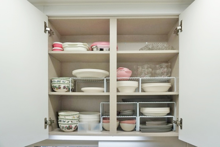 두 번째 방법은 옷걸이나 바지 걸이를 이용해서 거는 방법인데요. 싱크대 문 안쪽에 후크를 붙여 옷걸이를 걸어주시면 되고요.