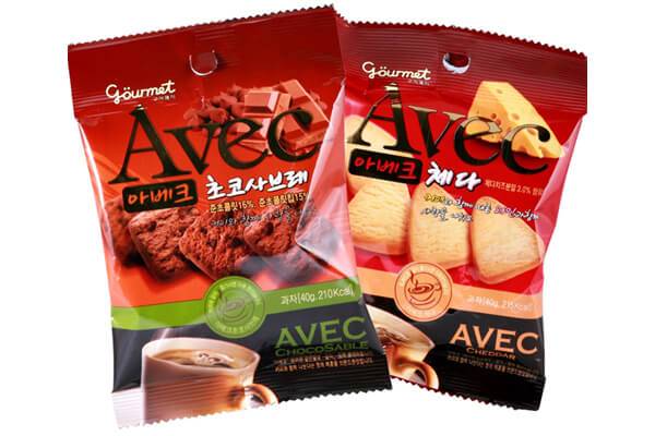 버터 향과 부드러운 맛이 일품인 사브레는 티 푸드로 더할 나위 없이 잘 어울린다. 그중에서도 아베크 사브레는 한 입에 쏙 들어가는 미니 사이즈로 편하게 즐길 수 있고 소포장 되어 있다 보니 남김없이 한 번에 먹을 수 있는 것이 장점(과자 마니아라면 적은 양이 부족할 수 있겠지만). 종류는 초코와 체다 치즈 맛 2가지로 초코 사브레는 보기와 다르게 묵직하면서도 진한 초콜릿 맛을, 체다 치즈 맛은 부드러우면서도 진한 치즈 향을 풍긴다.
