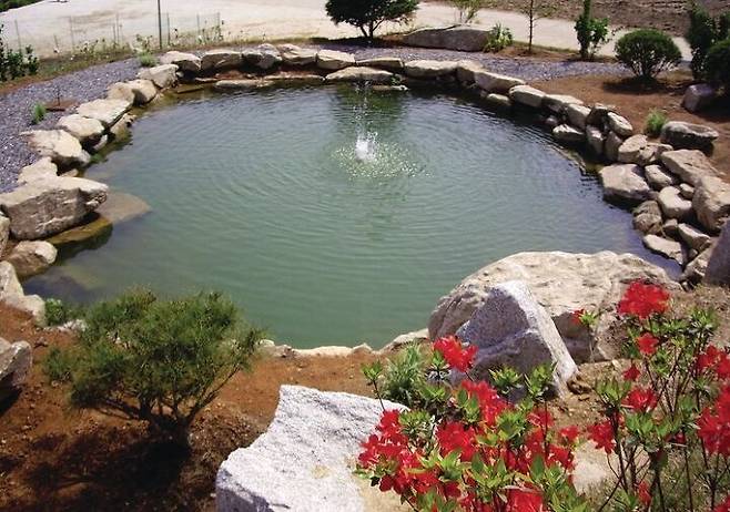 Q 16.5㎡(5평) 정도의 작은 연못을 만들고 있는데, 땅은 이미 파 놓았으며 배수로 구멍 작업도 끝났다. 방수 시트는 꼭 필요한 것이라 구입할 계획이며 인공 연못에 분수가 있으면 좋다고 해서 분수 세트도 구입하고 싶다. 정화 가능한 필터를 구입해야 하는지 약품 처리를 해야 하는지 궁금하다.