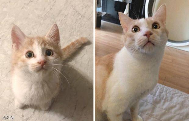 두 손에 쏙 들어올 만큼 작았던 미오는 현재 지혜 씨의 사랑을 듬뿍 먹고 확대돼 7.6kg가 됐단다.