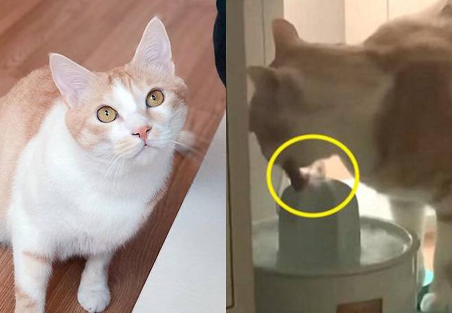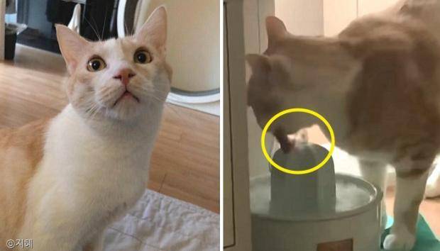 사주자마자 잘 사용하는 냥이들이 있는가 하면, 뜻밖의 행동으로 큰 웃음을 주는 냥이들도 있는데. 여기 냥정수기 사용법을 잘못 배운 고양이가 있어 소개한다.