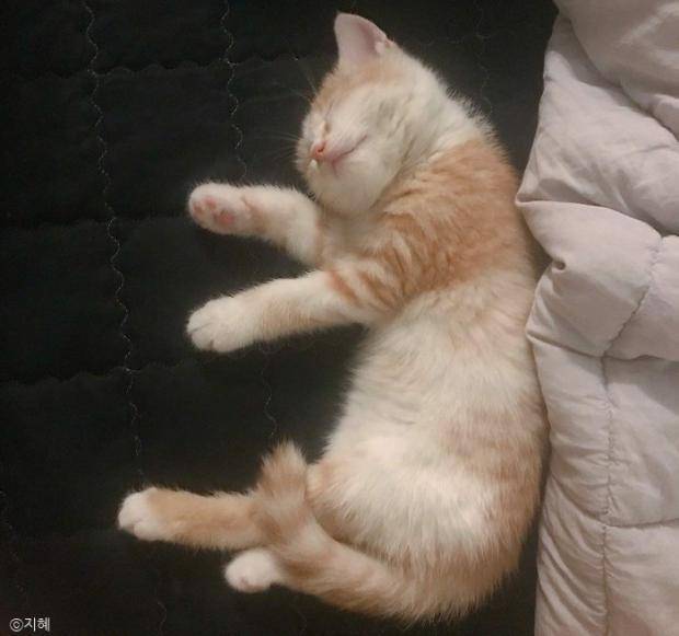 하지만 그날 미오는 집에 도착하자마자 마취도 덜 깬 상태로 지혜 씨의 배 위에 올라와 골골송을 불렀다고.