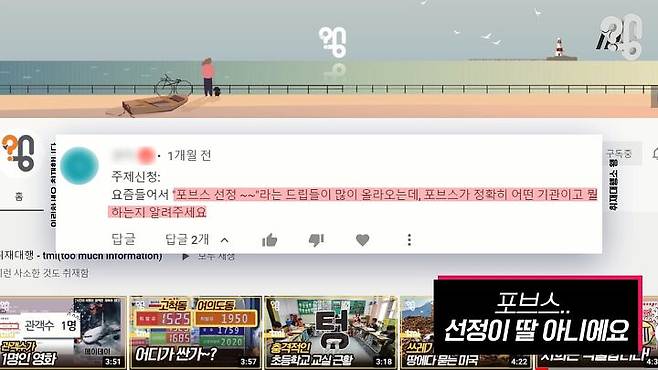 “포브스 선정, 취재 짱 잘하는 유튜브 채널은 어디인지 궁금합니다?!”