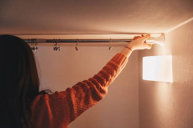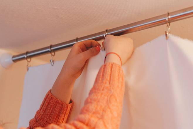 커튼에 간격이 좁은 주름을 만들기 위해 커튼 집게 고리 14개 정도를 걸었어요. 커튼 집게 고리를 적게 걸수록 간격이 넓어져 큰 주름이 잡힌답니다.