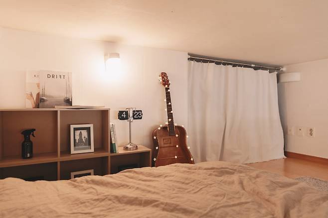 저만 놀랍나요? 복층 자투리 공간에 옷장이 생기다니.. 그 밑엔 계절에 안 맞는 옷을 넣을 리빙 박스까지.. 말이 필요 없습니다. 제가 정말 필요했던 옷 보관 장소를 만들어주셨어요!!
