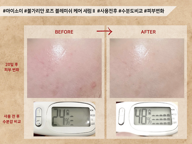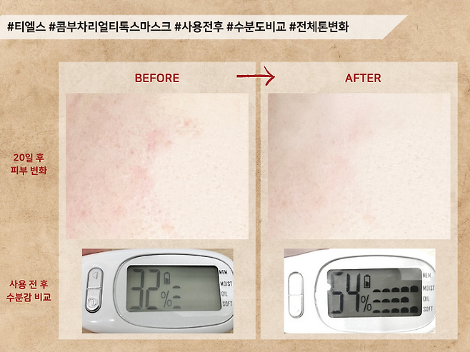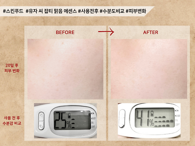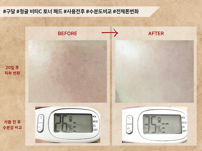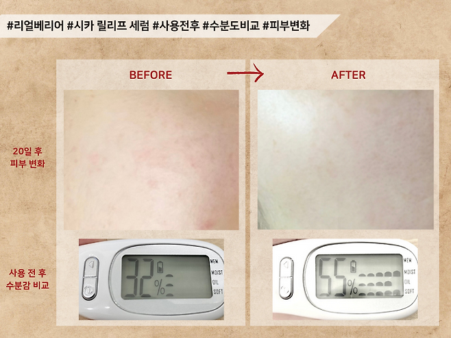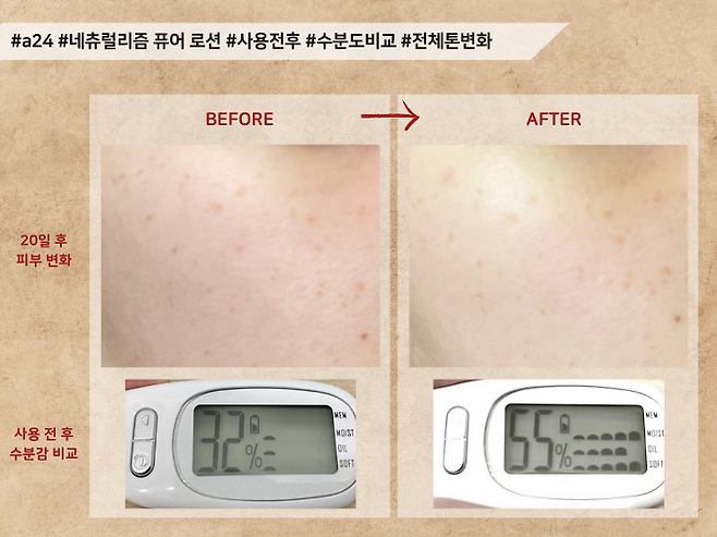 사용 직후 수분감은 55%로 높은 편이였지만