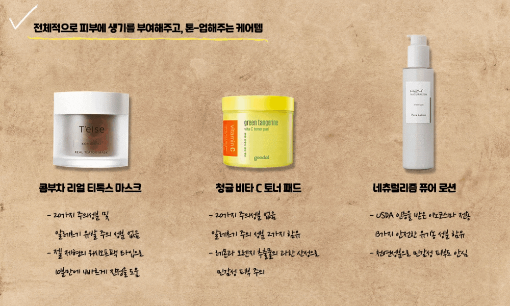 전체적인 피부 톤과 결 정리에 탁월한 제품 3!
