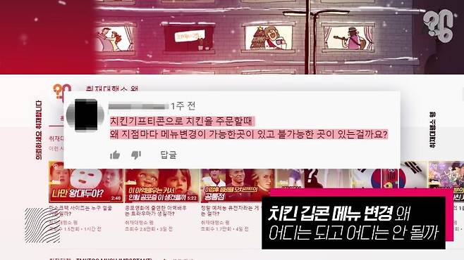 유튜브 댓글로 “기프티콘으로 치킨을 구매할 때, 왜 지점마다 메뉴 변경 여부가 다른지 알아봐 달라”는 의뢰가 들어와 취재해봤다.