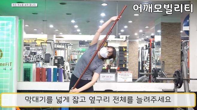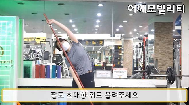 막대기로는 팔이 뒤로 안넘어갈 수 있어요.
