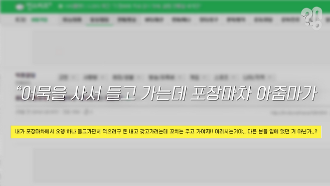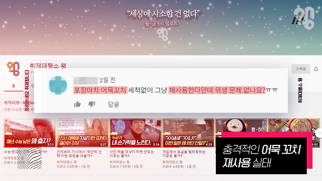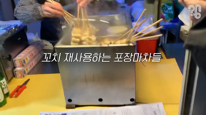 유튜브 댓글로 “포장마차에서 다른 사람이 먹었던 어묵에 있는 나무 꼬치를 재사용하던데 이거 위생에 안 좋은 건 아닌지 취재해 달라”는 의뢰가 들어와 취재했다.