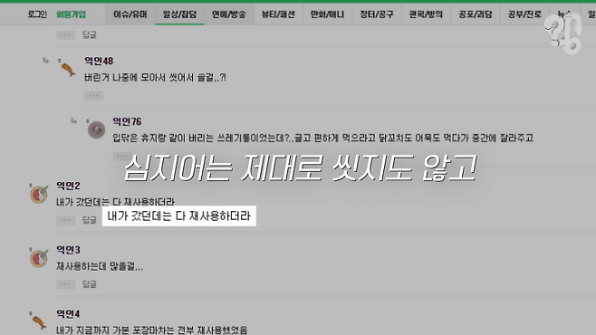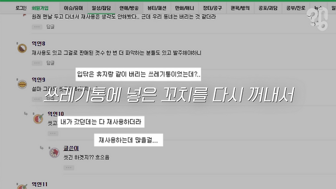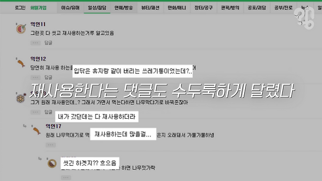 나무 꼬치는 예를 들면 도구나 그릇이나 이런 거에 해당이 되기 때문에 재사용 처벌 규정은 없고요. 보통 세척해서 재사용하지요.”