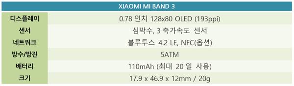 미 밴드 3의 가격은 169위안, NFC를 탑재한 모델은 199위안이다. 149위안이었던 전작보다는 조금 비싸졌지만, 여전히 한화로 30,000원대 안팎인 수준이다. ‘가격깡패’로서의 명성은 여전한 셈이다. 아쉬운 점을 꼽자면,국내 정식 발매 전이라서 아직 한글을 지원하지 않는다는 점 정도다. 가성비에 세련된 디자인, 한층 더 똑똑해진 기능까지 완벽한 삼위일체를 이루는 미 밴드 3. 주춤했던 스마트밴드시장에 활력을 불어넣어 주길 기대해 본다.