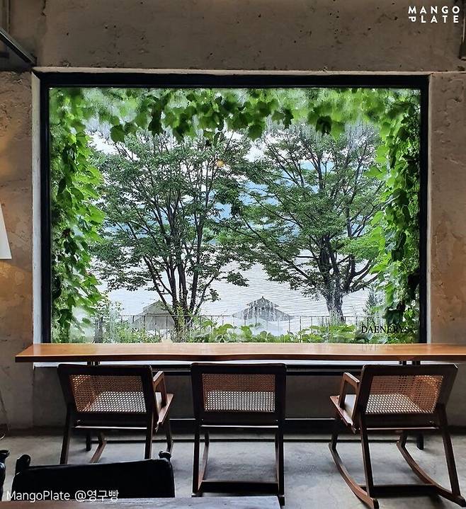 망고걸의 추천은 2층 자리의 창문 바로 앞자리! 마치 한 폭의 그림 액자 마냥 인생 샷을 건질 수 있어요.