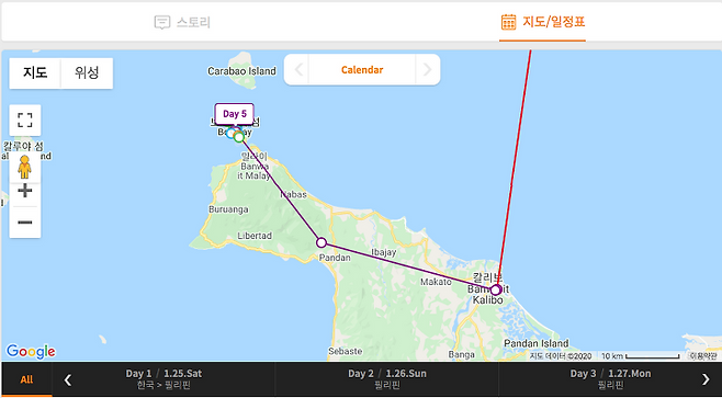 위시빈에서 여행계획툴을 사용시 자동으로 계산되어 정리된다.