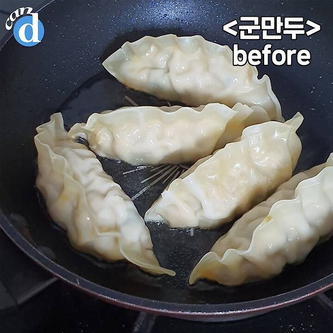 만두를 기름에 지글지글 구워냈습니다.