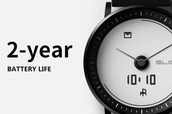 GLIGO는 우리가 일반적으로 알고 있는 아날로그 쿼츠 시계 형식을 취하고 있음과 동시에 블랙과 화이트, 그리고 모노톤의 색상만을 내는 E-ink 스크린의 형식도 취하고 있다. 배터리를 효율적으로 활용하기 위해 듀얼 코어(쿼츠 코어, E-ink 스크린) 디자인을 채택한 것이다. 여기서 배터리 지속시간을 엄밀히 따지면 2년간 지속되는 코어는 쿼츠 코어, 즉 시곗바늘이고, E-ink 스크린은 약 180일 정도의 지속 시간을 가진다. 시계의 배경이 되는 스크린은 비록 2년 동안 사용할 수는 없어 속은 기분이 들지만, 생각해보면 180일도 꽤 놀라운 수치다.