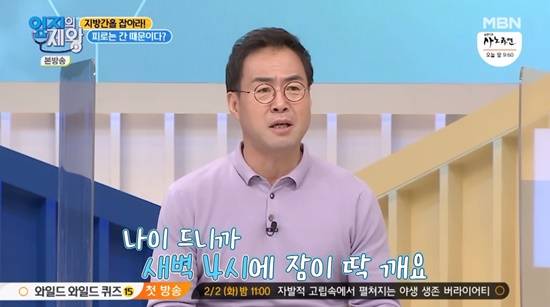 이날 이만기는 "나이가 드니까 새벽 4시만 되면 잠이 깬다. 그런데 보니까 나만 그런게 아니라 또래 중에 그런 사람이 의외로 많더라. 왜 그런거냐"고 물었다.