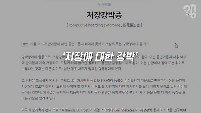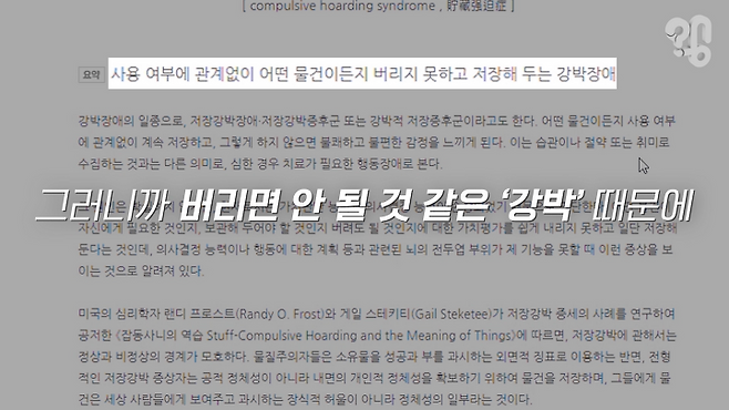 저장강박증이란 건요 언젠가는 이걸 쓸 것 같아서 나중에 필요해지면 어쩌지 불안해서 이런 행위가 나오는 것이거든요.