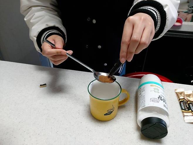 (아쉽게도 설탕, 프림이 섞여있는 맥심 커피는 안 된다고 하니 only 원두가루만 들어있는 제품으로 만들어주세요.)