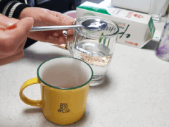 그리고 설탕 한 스푼. 달게 먹는 것을 좋아하는 분들은 설탕을 더 많이 넣어도 됩니다. 그래서 저는 설탕은 아주 큰 스푼에 가득 1스푼을 담았습니다.