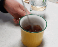 3분 정도 흔들면 안에 담긴 용액이 더 이상 흔들리지 않는 상태가 됩니다.