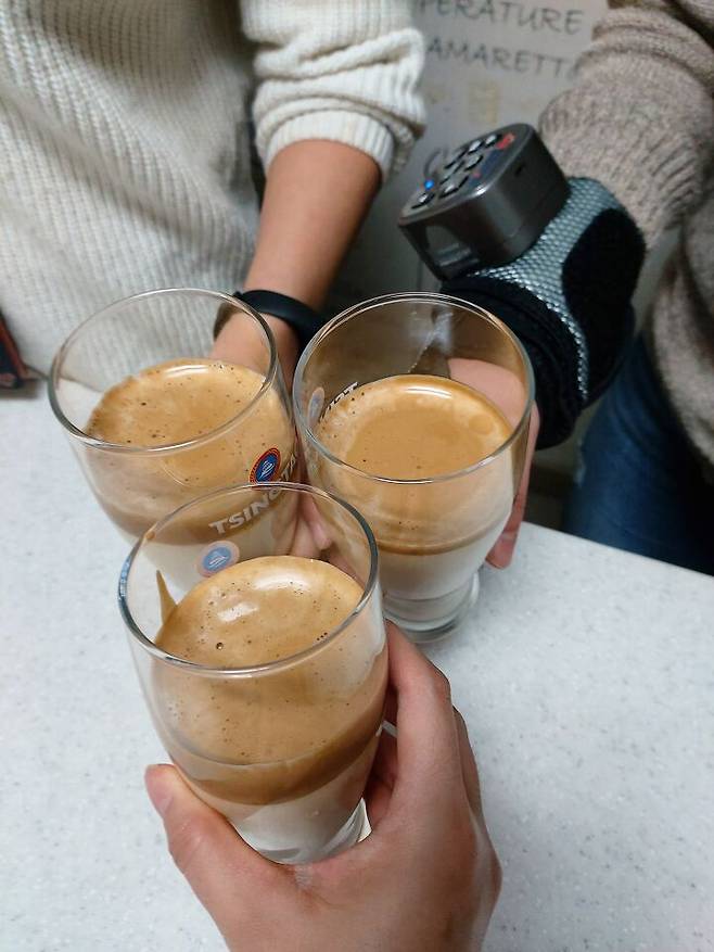 여러분들도 집에서 팔 아프지 않게 속성으로 달고나 커피를 만들어 보세요. 재밌고 맛있어요.