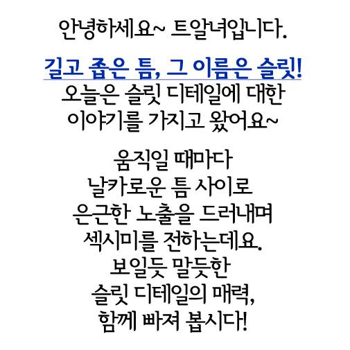 여름철 슬릿 디테일 하나면 쿨걸 변신은 문제없고요.