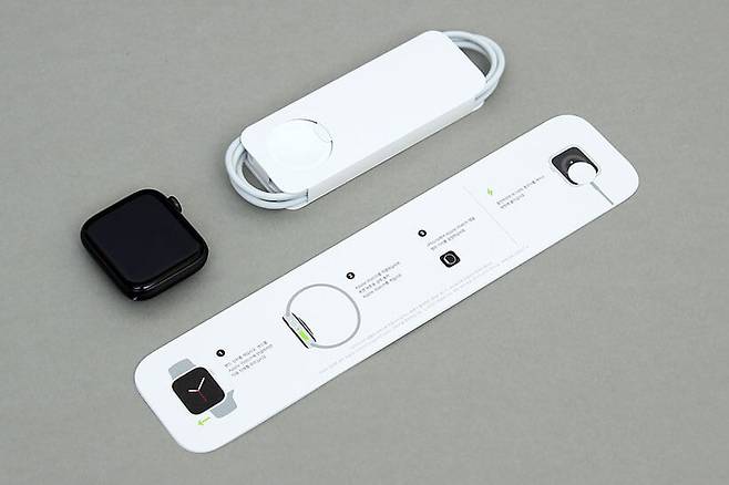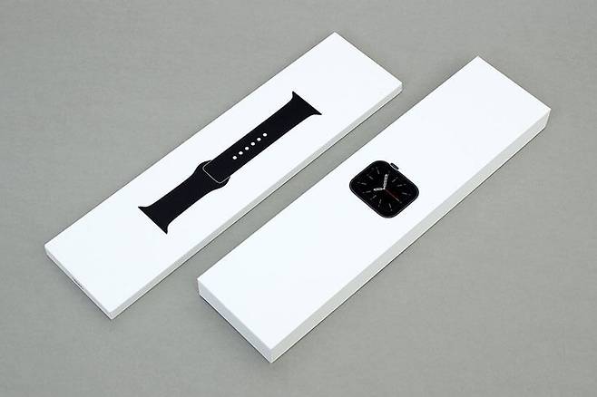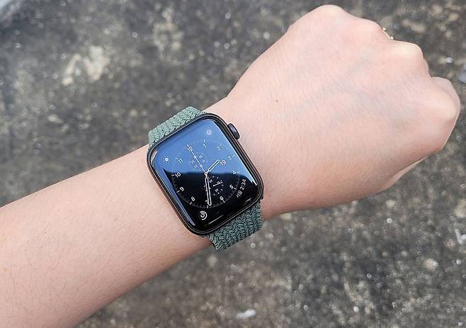 이번 리뷰에 사용된 애플 워치 시리즈6는 스페이스 그레이 알루미늄 케이스에 검정 스포츠 밴드로 이루어진 44㎜ 셀룰러 모델이다. 시리즈5까지만 해도 국내에서 애플 워치를 구매할 때 밴드의 선택이 굉장히 한정적이었고, 다른 밴드를 사용하려면 추가 구입해야 하는 아쉬움이 있었지만, 이제는 다양한 종류와 색상의 밴드를 처음부터 선택해서 구입할 수 있게 되었다.