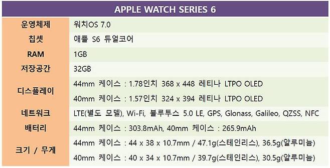 애플 워치 시리즈6의 가장 큰 변화는 혈중 산소 포화도 측정 기능이 추가되었다는 것이다. 대부분의 웨어러블 기기와 마찬가지로 이 기능도 의료용으로 사용될 수준은 아니지만, 운동과 연계된 다양한 활용이 가능할 것으로 보인다. 또한 상시표시 디스플레이가 최소화되어 있을 때의 밝기가 시리즈5에 비해 약 2.5배 밝아져서 한낮의 야외에서도 화면을 쉽게 확인할 수 있게 되었다. 고도계 또한 상시감지형으로 변경되어서 등산 등을 할 때에도 몇 번씩 현재 고도를 체크할 필요가 없다. 하지만 시리즈4부터 추가된 심전도 기능이 식약처의 허가를 받아 이제는 사용할 수 있을 것으로 예상했지만, 여전히 사용 가능한 국가에 포함되지 않았다는 점이 너무나도 아쉽다.