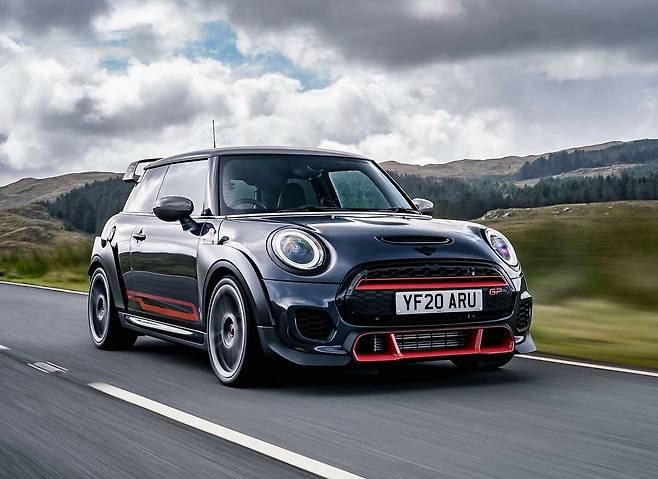 미니 해치백을 기초로 개발된 JCW GP는 혼다 시빅 타입 R, 르노 메간 RS 300 트로피 등과 경쟁한다. 302마력을 발휘하는 4기통 2.0리터 터보 엔진은 앞바퀴만 굴리며 최고 속도 264km/h까지 달릴 수 있다.