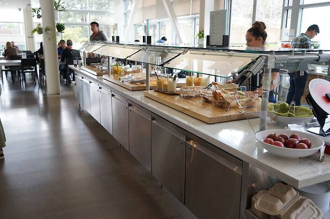 실리콘밸리에 위치한 기업들의 가장 큰 특색은 식당입니다. 유튜브에서도 식당을 찾았습니다. 점심식사가 한창이었는데요. 동료들끼리 식사하거나, 혹은 혼자 식사하는 모습도 많이 눈에 띄었습니다. 출퇴근이 자유로울 뿐만 아니라 업무를 하는 위치에도 제약을 받지 않는 회사 문화가 반영된 듯했습니다.
