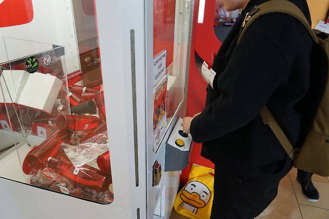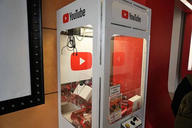 유튜브 본사 리셉션 센터 한켠에는 방문객들을 위한 기념품 자판기가 있었습니다. 방문객에 한해서 리셉션에서 전용 코인을 받아서 뽑기를 할 수 있었는데요. <블로터>와 일정을 함께한 동행인이 대표로 도전을 해봤습니다.
