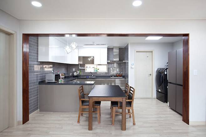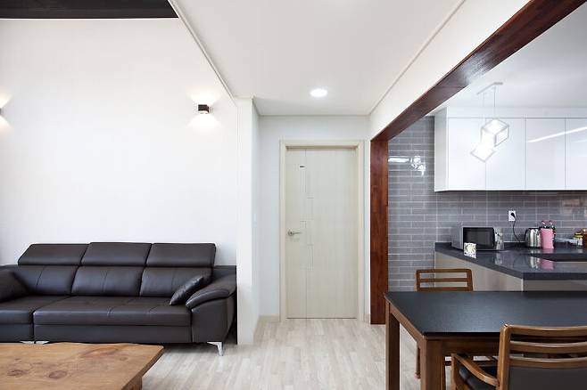 가족이 가장 오래 머물고 생활하는 공간은 거실과 주방이다. 거실은 가족의 소통 공간이며 휴식을 위한 자리다. 특히, 건축주는 마당-거실-주방 동선을 연결하고 작은 데크도 마련한 부분을 가장 좋아한다. 마당에서 텃밭을 가꾸고 자연을 누리며 여유로운 삶을 보내길 바라던 삶의 조건을 충분히 만족시키기 때문이다.
