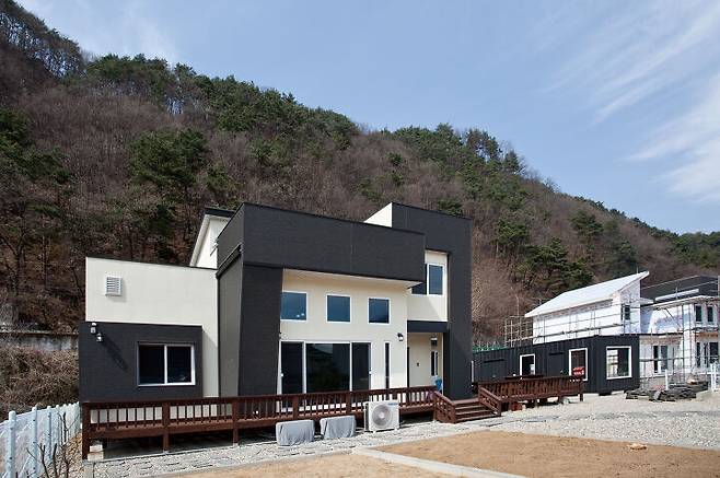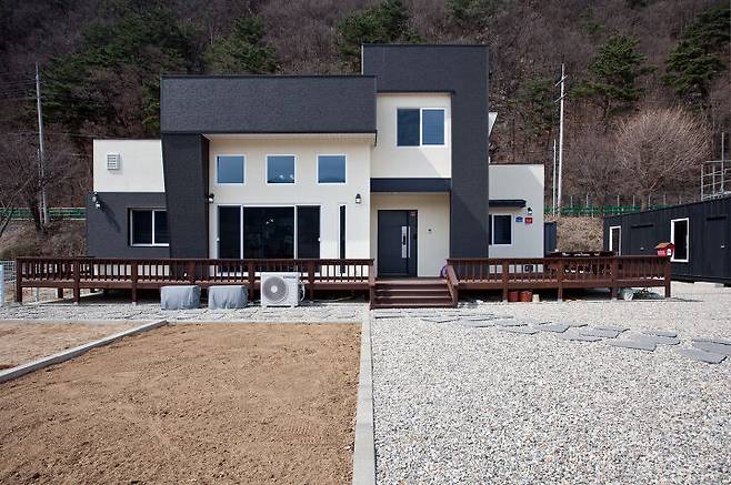 하늘채 마을은 5000평 규모에 24가구가 들어설 예정이다. 분양은 초기에 마쳤고 현재 1/3 정도 주택이 들어선 상태다. 건축주 가족은 군 관사에서 지내다 지난겨울에 입주했다.