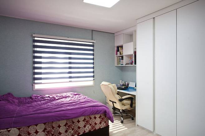 최고의 인테리어는 공간에 머무는 사용자의 편안함에 있다. 따라서 인테리어는 가족의 편안한 감성을 따랐다. 거실의 높은 천장 디자인과 밝은 명도로 전체 느낌을 답답하지 않게 하고, 주요 실은 포인트로 부드러운 파스텔 톤 마감재로 간결하게 마쳤다.